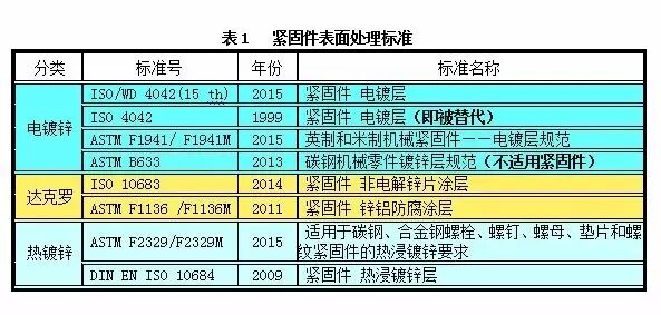 从2011年后ISO/TC2/ SC14国际紧固件(表面涂层)分技术委员会和ASTM F16.03美国紧固件涂层分技术委员等国家的标准化组织,对紧固件电镀、非电解锌片涂层(达克罗)和热浸镀锌三个主要的表面处理标准也加快了修订进度,2014年和2015 年ISO 和ASTM都相继推出了紧固件的涂层新标准,有些标准是被彻底修改或更新。